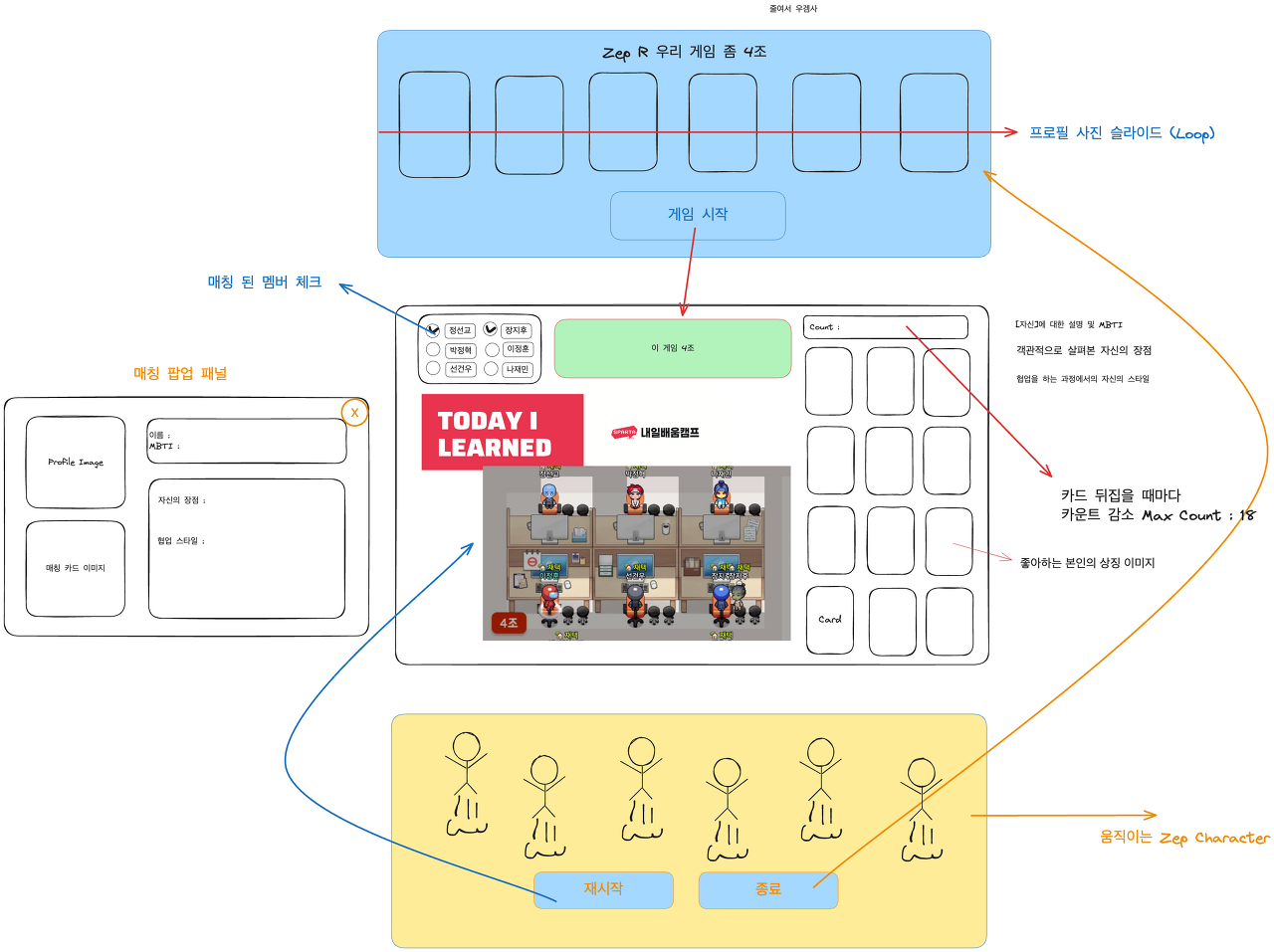 다른 사람들의 작업을 참고할 수 있었고 특히 와이어 프레임과 Scene 구상을 하며 팀원들에게 배울 점이 많았다. 이번 협업을 통해 나의 실력 또한 발전시킬 수 있으면 좋겠다.