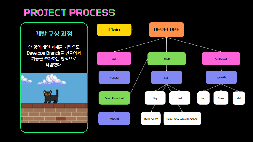 - 전사, 마법사 등 판타지 직업들을 현대 판타지 스토리에 맞춰 소방관, 군인 등으로 수정- 스테이지를 탑에 오르는 내용에서 지하로 내려가는 컨셉으로 수정