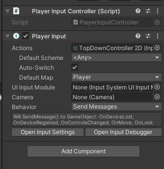 _controller = GetComponent<TopDownCharacterController>(); // GetComponent : Inspector 안의 Compenent를 가져온다