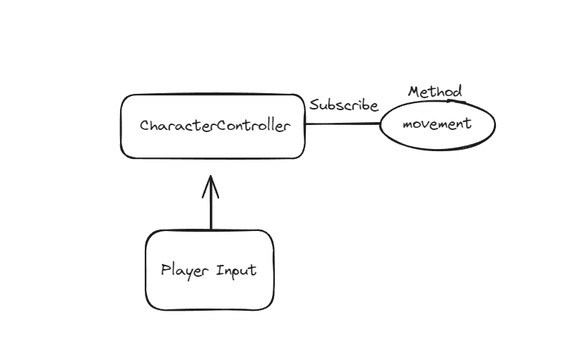 _controller.OnMoveEvent에 Move를 구독했기 때문에 키보드를 눌렀을 때, PlayerInputController의 상위인 TopDownCharacterController에 전달하고 거기서 구독하고 있는 TopDownMovement가 실행된다.