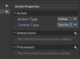 Action Type을 Value로, Control Type을 Vector2로 바꿔준다. 이 액션을 취했을 때, 돌려받는 값이 Vector2인 것이다.