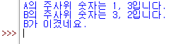 print("A의 주사위 숫자는 %d %d입니다." % (diceA1, diceA2))