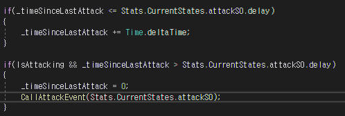 CharacterController에서 Attack을 불러올 때 스탯을 불러오도록 한다.