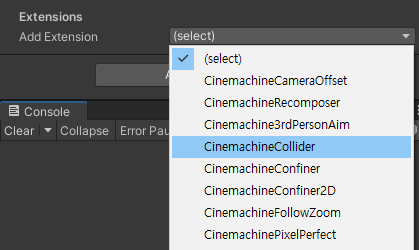 Virtual Camera에서 Add Extension에서 CinemachineCollider를 추가하면 카메라에 충돌체가 달려서 일정 거리가 되면 Player에 가까워지며 오브젝트에 시야가 막히지 않는다.