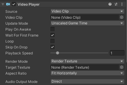 Video Player 설정을 보니 Render Mode가 Render Texture로 되어있었다.