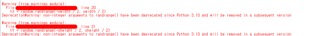 DeprecationWarning: non-integer arguments to randrange() have been deprecated since Python 3.10 and will be removed in a subsequent version