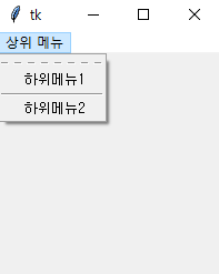 totalMenu.add_cascade(label = "상위 메뉴", menu = upMenu)