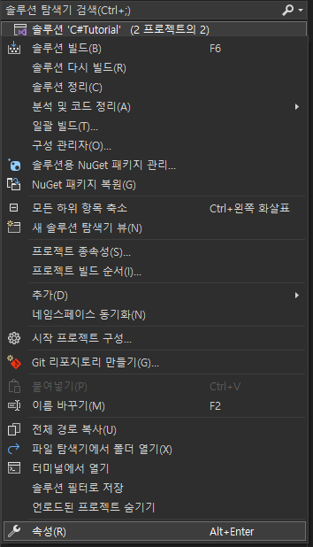 Visual Studio(Visual Studio Code와 다른 프로그램이다. 지금까지 같은건줄) 에서 솔루션 내에 프로젝트를 여러 개 생성했을 때,해당 프로젝트만 실행하는 방법