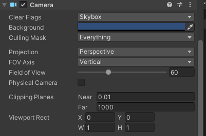 어디부터 어디까지 보일 것인지 Main Camera의 시야 절도체를 조절한다.